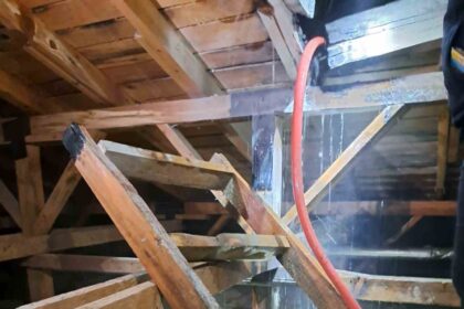 Muğla’nın Menteşe ilçesi eski TOKİ konutlarının bulunduğu D69 blokta çıkan çatı yangını…