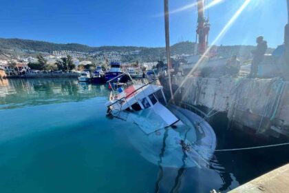 Kuvvetli rüzgar Güllük’te tekneyi batırdı
