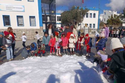 Bodrum’da öğrencilere yapay kar sürprizi