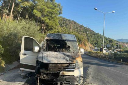 Marmaris’te turistleri taşıyan minibüs alev aldı
