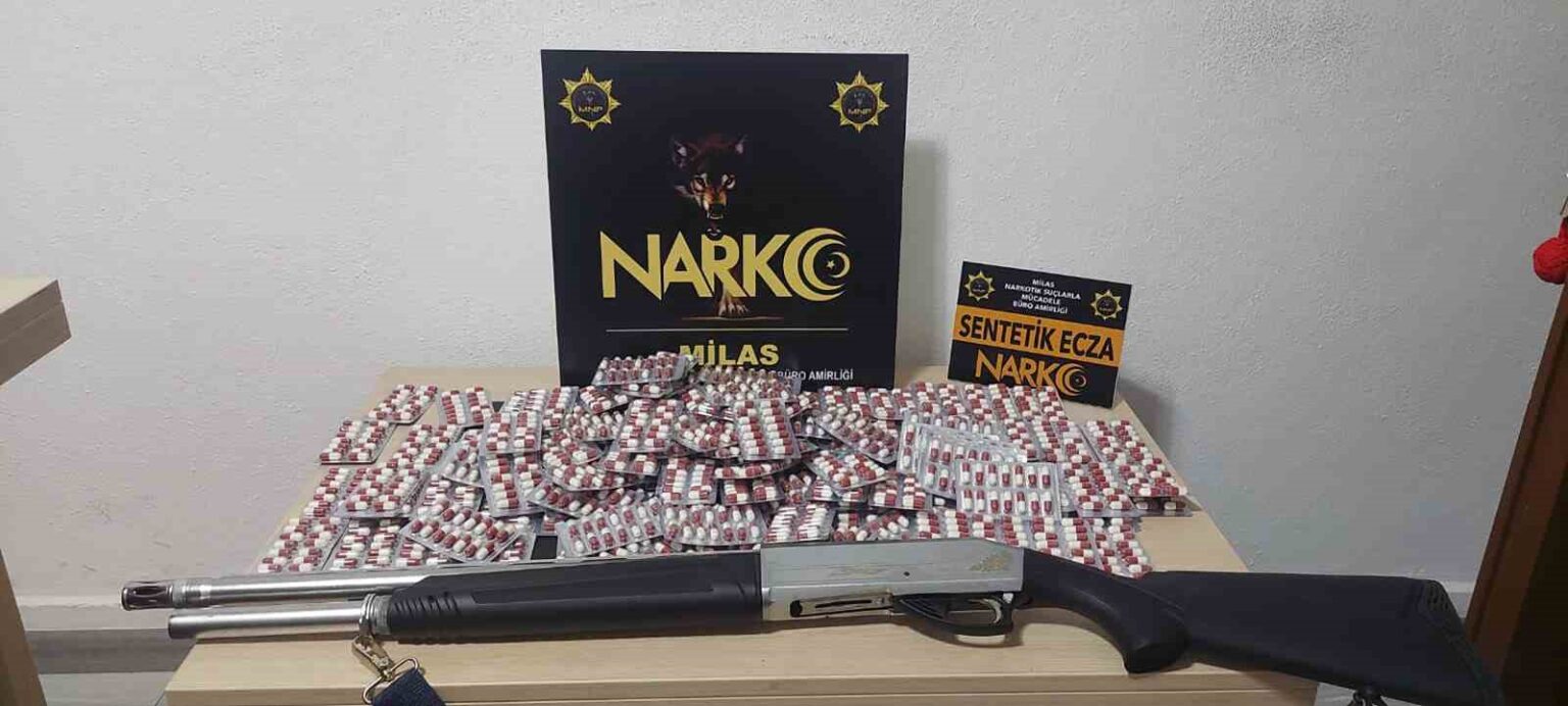 Muğla Emniyet Müdürlüğü Narkotik Suçlarla Mücadele Şube Müdürlüğü ekiplerince Milas ilçesine uyuşturucu madde taşıdıkları yönünde bilgi edinildi. Yapılan çalışmalar kapsamında, Antalya İli istikametinden Milas ilçesine gelen şüpheli 3 şahıs Narkotik Şube ekiplerince yakalandı. Şüpheli şahısların araçlarında ve ikametinde yapılan aramada; 2 bin 115 adet sentetik ecza maddesi ve ruhsatsız av tüfeği ele geçirildi.
