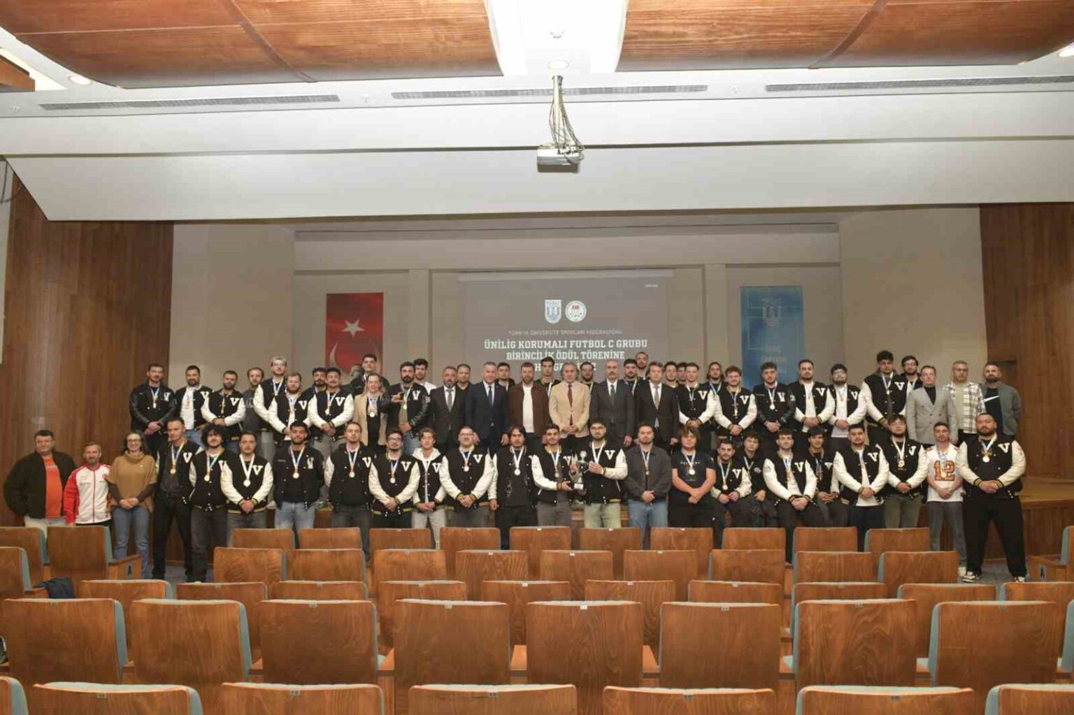 MSKÜ Rektör Yardımcısı Prof. Dr. Mustafa Gökçe, Spor Bilimleri Fakültesi Dekanı Prof. Dr. Özcan Saygın, Dekan Yardımcısı Prof. Dr. Tonguç Osman Mutlu, Öğr. Gör. Zeynep Aydoğan ve akademisyenlerin yer aldığı ödül töreninde, sporculara kupa ve madalyaları protokol tarafından takdim edildi.